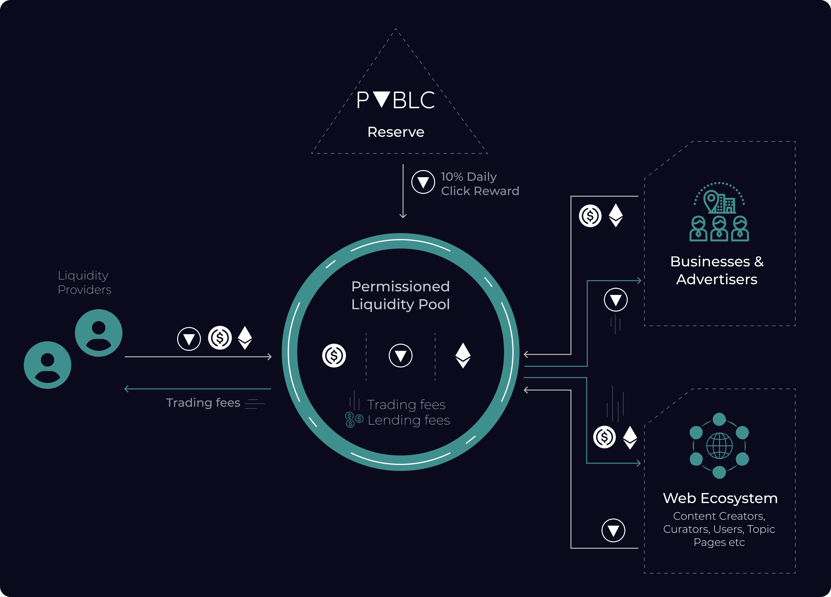 PUBLC's DeFi model is being designed to increase the token's liquidity and reduce volatility, while accelerating the growth of PUBLC and supporting its entire community. Liquidity Providers supply liquidity to PUBLC's Liquidity Pool and earn fees based on the token distribution model that is tied to the platform's real-life revenue model.